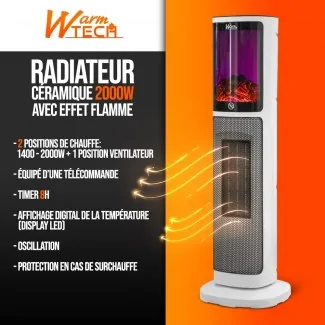 Dieser Keramikheizkörper der Marke Warm Tech ist sehr effizient und dekorativ zugleich. Dank eines Oszillationssystems erwärmt es Ihren Raum gleichmäßig. Mit zwei Heizpositionen und einer Lüfterposition passt er sich ganz einfach Ihren Bedürfnissen an. Dank seiner Fernbedienung können Sie die gewünschte Wärme ganz einfach direkt von Ihrem Sofa aus regulieren. Es ist auch programmierbar und macht es einfach, die Heizzeit einzustellen. Darüber hinaus verfügt der Keramikheizer WTCH2000TL über einen wirksamen Schutz vor Überhitzung.