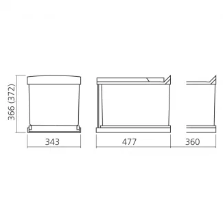 - Abmessungen: H 372 mm x B 343 mm x T 477 mm