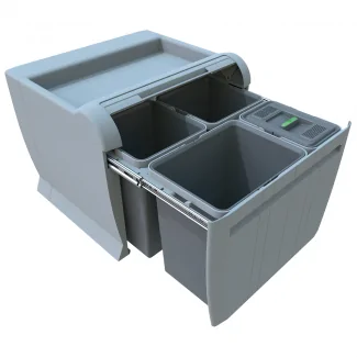 Der ausziehbare Küchen-Mülleimer zur Mülltrennung 50L ist konzipiert, um die tägliche Abfallentsorgung zu erleichtern. Mit seinen 4 Behältern unterschiedlicher Kapazität (8L, 2x12L und 18L) ermöglicht er eine effiziente Trennung verschiedener Abfallarten. Dieser Mülleimer lässt sich perfekt in einen Küchen-Unterschrank integrieren und optimiert so den verfügbaren Platz. Sein Vollauszugssystem bietet einfachen Zugang zu allen Fächern und macht die Mülltrennung für die ganze Familie einfach und praktisch.