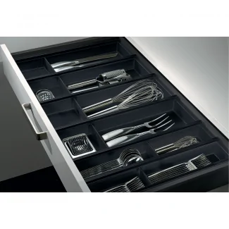 Einer der Hauptvorteile des CUISIO NINKA Besteckeinsatzes ist seine Kompatibilität mit den gängigsten Schubladensystemen. Er passt perfekt in TANDEMBOX-, LEGRABOX- und MERIVOBOX-Schubladen und garantiert so eine problemlose Installation in den meisten modernen Küchen. Diese Vielseitigkeit macht ihn zur idealen Wahl für Küchenrenovierungen oder Neuinstallationen, da er sich leicht an Ihre vorhandenen Möbel oder neue Einrichtungen anpassen lässt.