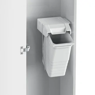 Dieser aus weißem PVC gefertigte Mülleimer passt zu jedem Küchenstil. Sein schlichtes Design und seine kompakten Abmessungen (Höhe 359 mm, Breite 203 mm und Tiefe 235 mm) machen ihn zu einem diskreten, aber effektiven Sortierzubehör. Der in den Eimer integrierte Griff hält den Müllbeutel sicher an Ort und Stelle und verhindert so Unannehmlichkeiten durch Auslaufen oder Verrutschen.