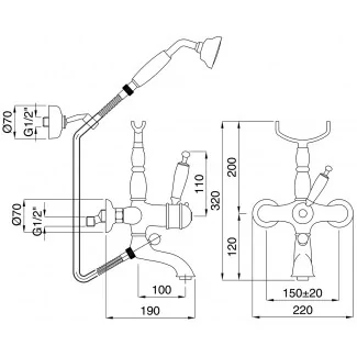 Thermostatische Badezimmer-Wandarmatur mit Dusche und Retro-Handbrause