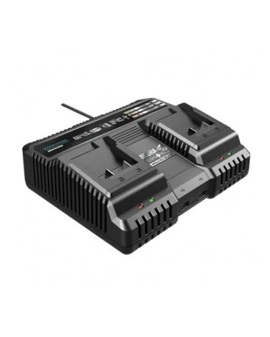 Thanks to its dual charging capacity, this charger allows users to maintain a continuous workflow by always having a battery ready for use. Its robust and compact design makes it a reliable tool for both construction sites and workshops.