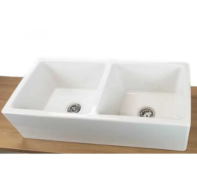 The white ceramic Belfast 2-bowl sink from Sarreguemines combines sleek design and functionality. Made of fine enameled stoneware, this butler sink offers excellent resistance to wear and chemical products. Its two spacious bowls allow for comfortable daily use. A high-end product that will bring a touch of elegance to your kitchen while ensuring practicality and durability.