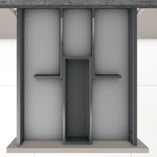 One of the main advantages of the Connect Set5 cutlery tray is its great versatility. Although it is ideal for a 300 mm wide drawer, it can easily adapt to larger spaces. For wider drawers, you have the option to add complementary elements such as: