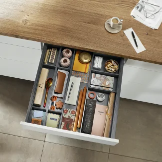 Discover this steel cutlery organizer designed to optimize space in your kitchen drawers. With a width of 100 mm, it fits perfectly in M and K height drawers, offering a compact and efficient storage solution. Its elegant design combines functionality and aesthetics, harmonizing with any type of modern kitchen.