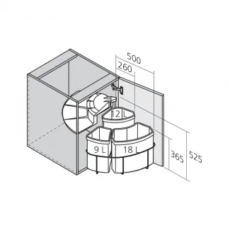 The 39-liter rotating kitchen waste sorting bin is designed to perfectly integrate into your kitchen space while facilitating daily waste sorting. With dimensions of 525 mm in height and 500 mm in depth, it easily adapts to most standard kitchen base units. Its ingenious rotating system allows easy access to each compartment, making waste sorting simple and efficient for the whole family.