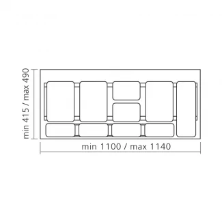 One of the major assets of this sorting system is its adaptability. With adjustable dimensions (width from 1100mm to 1140mm, depth from 415mm to 490mm), it fits perfectly into a wide variety of kitchen cabinet configurations. The height of 270mm is designed to optimize the vertical space of the drawer while remaining accessible. The various bins and accessories can be organized according to your specific needs, allowing you to create a custom sorting system adapted to your habits and kitchen layout.