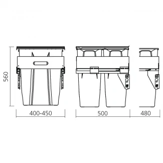 This innovative kitchen trash can is designed to facilitate daily waste sorting. With a total capacity of 70 liters divided into 2 bins of 35L each, it fits perfectly into a 450 or 500 mm cabinet. Its full-extension sliding system with damper ensures smooth and silent operation. The fixed metal lid allows direct access to the bins and provides additional surface for placing accessories. Practical and functional, this trash can optimizes space and simplifies waste sorting in your kitchen.