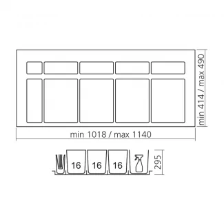 Our modular kitchen bin is designed to optimize waste sorting in modern kitchens. With a total capacity of 48 liters, it perfectly fits large drawers 120 cm wide. The system includes 3 main bins of 16 liters each, offering generous space to efficiently separate your waste. Additionally, a dedicated bin for papers and a compartment for household products allow for a complete organization of your sorting space.