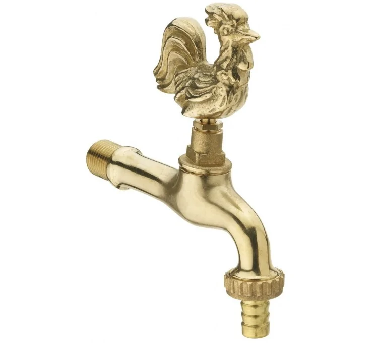 This unique rooster-shaped brass garden faucet will add a decorative and vintage touch to your outdoor space. Handcrafted using traditional methods, it combines aesthetics and durability thanks to its high-quality polished brass construction. Its original retro style makes it a standalone decorative element to elegantly enhance your garden or outdoor fountain. Compatible with M 1/2 and M 3/4 technical standards, this functional and durable faucet will meet your outdoor water needs.