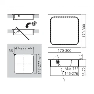 La instalación de esta tapa basculante para cocina es relativamente sencilla. Basta con crear un recorte de 147x147mm en su encimera, en el lugar deseado. La tapa se empotra perfectamente en esta abertura, con una profundidad de 36mm. Asegúrese de centrar bien la tapa y fijarla firmemente para garantizar su buen funcionamiento.
