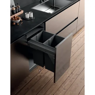 El cubo de basura deslizante de cocina EVO es la solución ideal para una separación de residuos eficiente y discreta. Con su capacidad de 58 litros y su sistema de extracción total, se integra perfectamente en tu mueble de cocina. Su diseño en gris antracita combina estética y funcionalidad para una gestión óptima de los residuos en el día a día. Fabricado en metal y plástico de calidad para una máxima durabilidad.