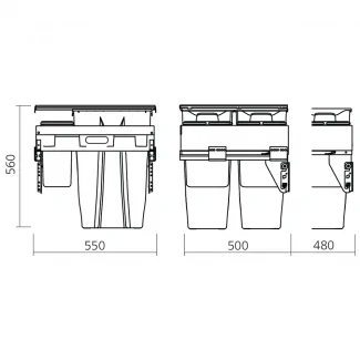 El diseño ingenioso de este cubo de basura deslizante le permite integrarse perfectamente en un mueble bajo de cocina estándar de 60 cm de ancho. Con una profundidad mínima requerida de 500 mm y una altura de 560 mm, se adapta a la mayoría de las configuraciones de cocinas modernas. El sistema deslizante de extracción total, equipado con un amortiguador, asegura un uso suave y silencioso, añadiendo un toque de comodidad a su experiencia diaria.