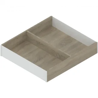 Diseñado para adaptarse a diferentes configuraciones, este organizador de cubiertos es compatible con cajones de altura M y K. Requiere guías con una longitud mínima de 270 mm para una instalación óptima. Estas características técnicas lo convierten en un accesorio versátil, integrándose en la mayoría de las cocinas modernas.