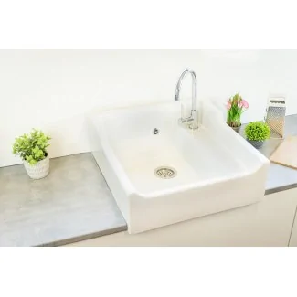 Fregadero de cerámica tipo office con 1 cubeta estilo vintage blanco 60 cm