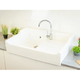 La instalación de este fregadero de 1 cuba es relativamente simple, ya sea para colocar sobre un mueble o empotrado en una encimera. Su diseño monobloque en cerámica asegura una perfecta estanqueidad y gran estabilidad. Para el mantenimiento diario, basta con una simple limpieza con agua jabonosa. En caso de manchas difíciles, se recomienda el uso de un producto suave especial para cerámica para preservar el brillo del blanco.