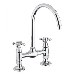 Este grifo de puente para fregadero con diseño retro aportará un toque de elegancia a su cocina o baño. Con una distancia entre centros de 150 mm entre las dos bases, se adapta perfectamente a los fregaderos estándar. Puede elegir entre 5 acabados refinados: cromo, cobre envejecido, bronce envejecido, dorado o cromo dorado. Su forma arqueada clásica y sus manijas cruzadas le confieren un encanto atemporal que realzará su interior.