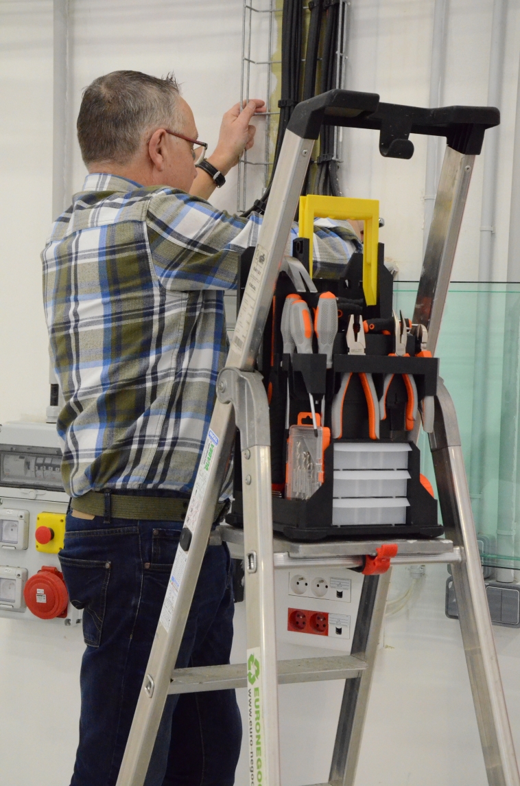 Los compartimentos en altura están colocados de manera que siempre sean accesibles y presentan las herramientas verticalmente, para permitirle tomarlas fácilmente sea cual sea su posición de trabajo.