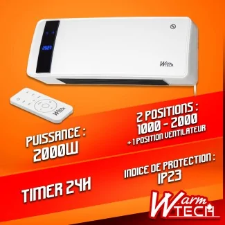 Este radiador cerámico de pared con una potencia de 2000W es la solución ideal para calentar eficazmente su interior. La tecnología cerámica permite una difusión rápida y homogénea del calor en la habitación, garantizándole un confort óptimo. Gracias a su alta potencia, es perfecto para espacios de hasta 20m². Su eficiencia energética le permite ahorrar en su factura de electricidad, mientras disfruta de un calor agradable.