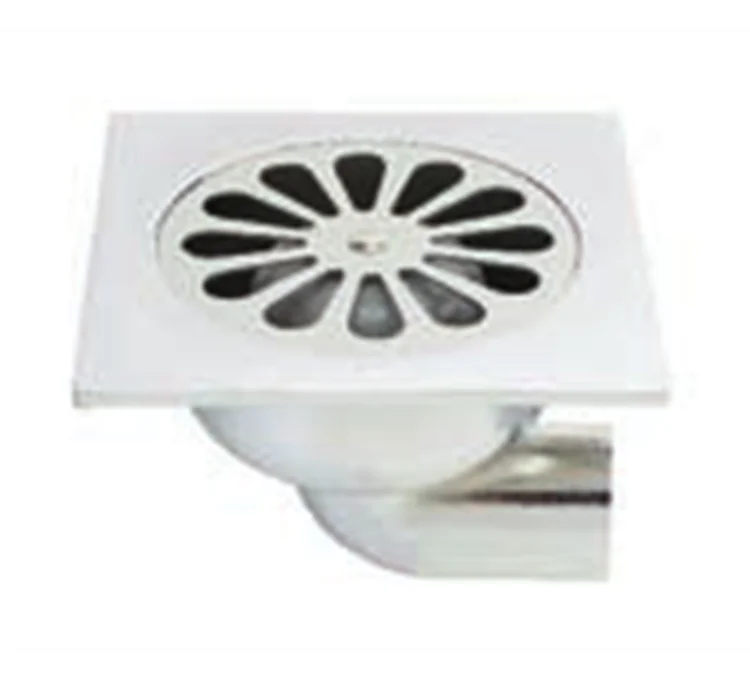 El diseño de este sumidero de suelo combina estética y practicidad. La rejilla cuadrada con motivos florales aporta un toque decorativo a la vez que asegura un filtrado eficaz de los residuos. Las dimensiones compactas del sumidero permiten una integración discreta en el suelo, armonizando con diferentes estilos de baldosas. La salida acodada a 90 grados ofrece flexibilidad de instalación, especialmente útil en espacios donde se requiere una evacuación horizontal.