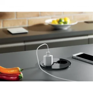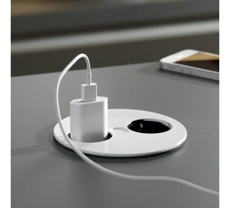 L'installation de cette prise encastrable ronde est relativement simple et peut être réalisée par un professionnel ou un bricoleur averti. Elle nécessite le perçage d'un trou dans votre plan de travail, puis la fixation de la prise à l'aide des éléments fournis. Compatible avec la plupart des matériaux de plan de travail (bois, stratifié, pierre, etc.), elle s'adapte à différentes épaisseurs grâce à son système de fixation ajustable. Pour une intégration parfaite, il est recommandé de vérifier la compatibilité avec votre installation électrique existante et de respecter les normes de sécurité en vigueur.