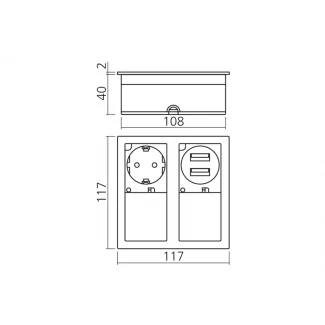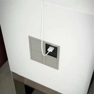 Le bloc encastrable carré multi-prises associe fonctionnalité et esthétique avec sa finition métallique brossée. Doté d'une prise 230V et de deux ports USB protégés par des couvercles coulissants indépendants, il s'intègre parfaitement dans les plateaux d'au moins 15 mm d'épaisseur.
