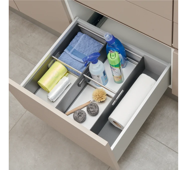 L'un des principaux avantages de l'aménagement de tiroir Flex Box est sa capacité à s'adapter à vos besoins changeants. Que vous souhaitiez ranger des ustensiles de cuisine, des produits d'entretien ou des accessoires divers, le Flex Box vous offre la flexibilité nécessaire. Vous pouvez facilement réorganiser les compartiments pour accueillir de nouveaux articles ou modifier l'agencement en fonction de vos habitudes culinaires. Cette adaptabilité garantit que votre espace de rangement reste toujours optimal et fonctionnel.