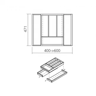 L'aspect extensible de ce range-couverts est un véritable atout pour s'adapter à différentes configurations de cuisine. Que vous ayez des tiroirs étroits de 400 mm ou plus larges allant jusqu'à 600 mm, ce range-couverts s'ajustera parfaitement pour maximiser l'espace de rangement. Cette flexibilité permet également de réorganiser facilement votre cuisine en cas de changement de mobilier, sans avoir à remplacer votre range-couverts.