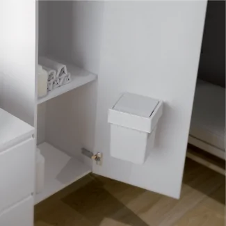 La poubelle de tiroir en PVC s'intègre harmonieusement dans tout type de décor de salle de bain grâce à son design épuré et fonctionnel. Sa couleur neutre lui permet de se fondre discrètement dans votre mobilier existant. Que vous ayez une salle de bain moderne, classique ou contemporaine, cette poubelle saura trouver sa place sans perturber l'esthétique de votre espace. Elle s'associe particulièrement bien avec les unités de rangement MCRAN3222 et MCRAN3223, créant ainsi un ensemble cohérent et pratique pour optimiser le rangement dans votre salle de bain.