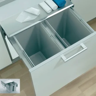 Notre poubelle de cuisine coulissante est conçue pour simplifier votre quotidien et optimiser le tri des déchets. Grâce à ses trois bacs distincts, vous pouvez aisément séparer vos déchets ménagers, recyclables et organiques. Le système coulissant offre un accès facile et rapide, même lorsque vos mains sont pleines. Cette poubelle encastrable s'adapte parfaitement aux meubles de cuisine standards de 60 cm de large, maximisant ainsi l'utilisation de l'espace disponible.