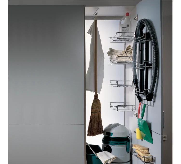 La mise en place de ce support mural est simple et rapide grâce à son système de fixation vertical. Avec des dimensions de 390 mm de largeur, 83 mm de profondeur et 765 mm de hauteur, il s'intègre parfaitement dans un placard ou une buanderie. La structure en acier garantit une stabilité optimale pour supporter le poids de l'équipement stocké.