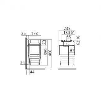 Ottimizza lo spazio nella tua cucina con il nostro cestino basculante da 8 litri. Progettato per integrarsi perfettamente nel tuo mobile, questo cestino da cucina combina funzionalità e discrezione. Il suo design ingegnoso ti permette di fissarlo facilmente sul lato destro o sinistro del tuo mobile, adattandosi così alla disposizione del tuo spazio. Il meccanismo basculante in avanti offre un accesso pratico al contenitore, facilitandone l'uso quotidiano.