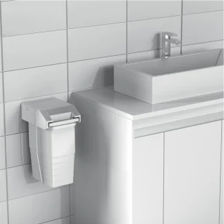 La manutenzione del cestino è altrettanto semplice. La sua superficie in PVC bianco si pulisce facilmente con un panno umido e un detergente delicato, garantendo un'igiene perfetta quotidianamente. Il design del contenitore, con il suo manico integrato, facilita la sostituzione del sacchetto della spazzatura e previene lo sporco accidentale all'interno del mobile.