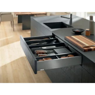 Che la tua cucina sia moderna, tradizionale o industriale, questo portaposate Blum si integra armoniosamente in tutti gli stili. Il suo design pulito e la sua finitura curata lo rendono un accessorio versatile che migliora l'estetica dei tuoi cassetti aumentandone al contempo la funzionalità. È la perfetta combinazione tra praticità ed eleganza, essenziale per una cucina ben pensata e piacevole da vivere quotidianamente.