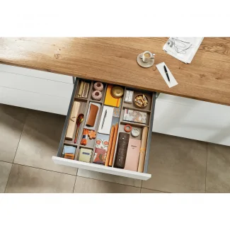 Questo portaposate di design in legno aggiunge un tocco di eleganza naturale alla tua cucina, organizzando efficacemente i tuoi utensili. Progettato per adattarsi perfettamente a cassetti larghi 200 mm, offre diversi scomparti per ordinare le posate e altri accessori. La sua finitura in legno di qualità si integra armoniosamente in tutti gli stili di cucina, dal più rustico al più contemporaneo.