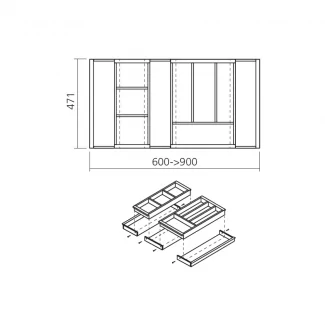 Questo portaposate adattabile in faggio massello è la soluzione perfetta per ottimizzare lo spazio nei cassetti della cucina. Il suo design ingegnoso gli permette di adattarsi a tutte le larghezze di cassetto comprese tra 600 e 900 mm. Che la vostra cucina sia dotata di cassetti standard o su misura, questo portaposate si adatterà perfettamente per sfruttare al meglio lo spazio disponibile. Le sue dimensioni di 62 mm di altezza e 471 mm di profondità gli consentono di integrarsi nella maggior parte dei cassetti, offrendo un generoso spazio di archiviazione senza ingombrare.