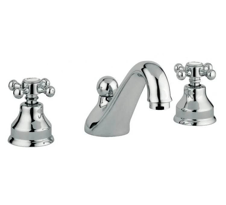 Il rubinetto per lavabo a 3 fori Versailles è la soluzione ideale per aggiungere un tocco di eleganza e raffinatezza al tuo bagno. Il suo design retrò chic con maniglie incrociate e bocca curva richiama il fascino dei bagni d'altri tempi, offrendo al contempo il comfort moderno. Appositamente progettato per lavabi a 3 fori, questo rubinetto si integra armoniosamente con il tuo lavabo per creare un insieme coerente e di stile. La sua costruzione in ottone massiccio di alta qualità garantisce solidità e durata per goderti il tuo rubinetto per molti anni.