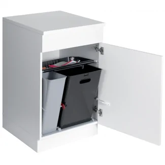 Il cestino basculante da cucina Kipp 52L è la soluzione ideale per facilitare la raccolta differenziata quotidiana. Con il suo sistema di apertura automatica all'apertura dell'anta del mobile, offre un accesso pratico e igienico. I suoi due scomparti da 26L ciascuno consentono di separare facilmente i rifiuti riciclabili dai rifiuti domestici. Progettato per integrarsi perfettamente nei mobili da cucina standard da 550 a 600 mm, questo cestino combina funzionalità ed estetica per un interno ordinato.