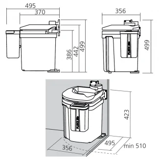 Questo cestino da cucina è progettato per integrarsi perfettamente in un mobile da 550mm. La sua installazione è semplice e può essere effettuata avvitandolo sul lato del mobile e sullo sportello. La flessibilità di montaggio permette di installarlo sia a destra che a sinistra, adattandosi così alla configurazione della vostra cucina. Con dimensioni di 499mm in altezza e 495mm in profondità, il cestino EUROFLEXX si integra armoniosamente nel vostro spazio cucina offrendo al contempo una notevole capacità di stoccaggio per i vostri rifiuti.