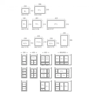 La nostra selezione di contenitori modulabili offre una grande varietà di dimensioni per adattarsi a tutte le configurazioni di cucina: