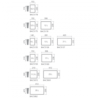 Questi contenitori modulari per la spazzatura sono la soluzione ideale per una raccolta differenziata efficace in cucina. Progettati per essere facilmente installati nei cassetti, questi secchi ergonomici in PVC grigio sono disponibili in diverse dimensioni per adattarsi alla vostra installazione. Dotati di manici per facilitarne il trasporto e tenere in posizione i sacchetti della spazzatura, possono essere completati con coperchi venduti separatamente. Con capacità che vanno da 4,2L a 35L, troverete sicuramente il contenitore che soddisfa le vostre esigenze.
