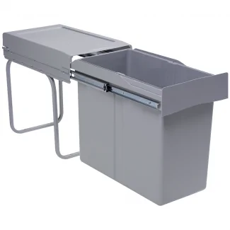 Una caratteristica ingegnosa di questo cestino da cucina è il suo coperchio che rimane all'interno del mobile quando estraete il secchio. Non solo nasconde il contenuto del cestino quando è chiuso, ma può anche servire come ripiano aggiuntivo per riporre prodotti per la pulizia o altri piccoli oggetti. Questa doppia funzione ottimizza l'utilizzo dello spazio nel vostro mobile da cucina.