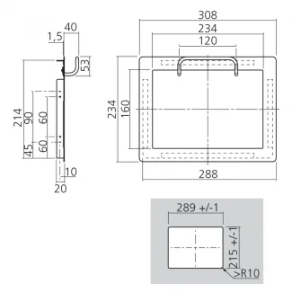 Questa botola per rifiuti da incasso è progettata per integrarsi armoniosamente nella vostra cucina offrendo una soluzione pratica per la gestione dei rifiuti. Realizzata in acciaio inox AISI 304 di alta qualità, unisce durabilità ed estetica. Le sue dimensioni di 308 mm di larghezza e 234 mm di altezza ne fanno un elemento compatto che si adatta alla maggior parte delle configurazioni di cucina. Con una profondità di incasso di soli 20 mm, si integra discretamente nella vostra parete senza invadere lo spazio interno.