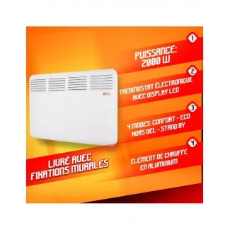 Con il suo design moderno e minimalista, questo convettore a parete si integra armoniosamente in tutti gli stili d'interni. Il suo colore bianco neutro si fonde discretamente nell'arredamento. Compatto e poco ingombrante, libera spazio a terra pur garantendo un riscaldamento efficiente. L'installazione di questo radiatore elettrico è un gioco da ragazzi. Basta fissarlo saldamente alla parete utilizzando il kit di montaggio fornito. Il suo collegamento elettrico si effettua semplicemente su una presa di corrente standard. In pochi minuti, il vostro nuovo riscaldamento supplementare è operativo per portarvi comfort e benessere.